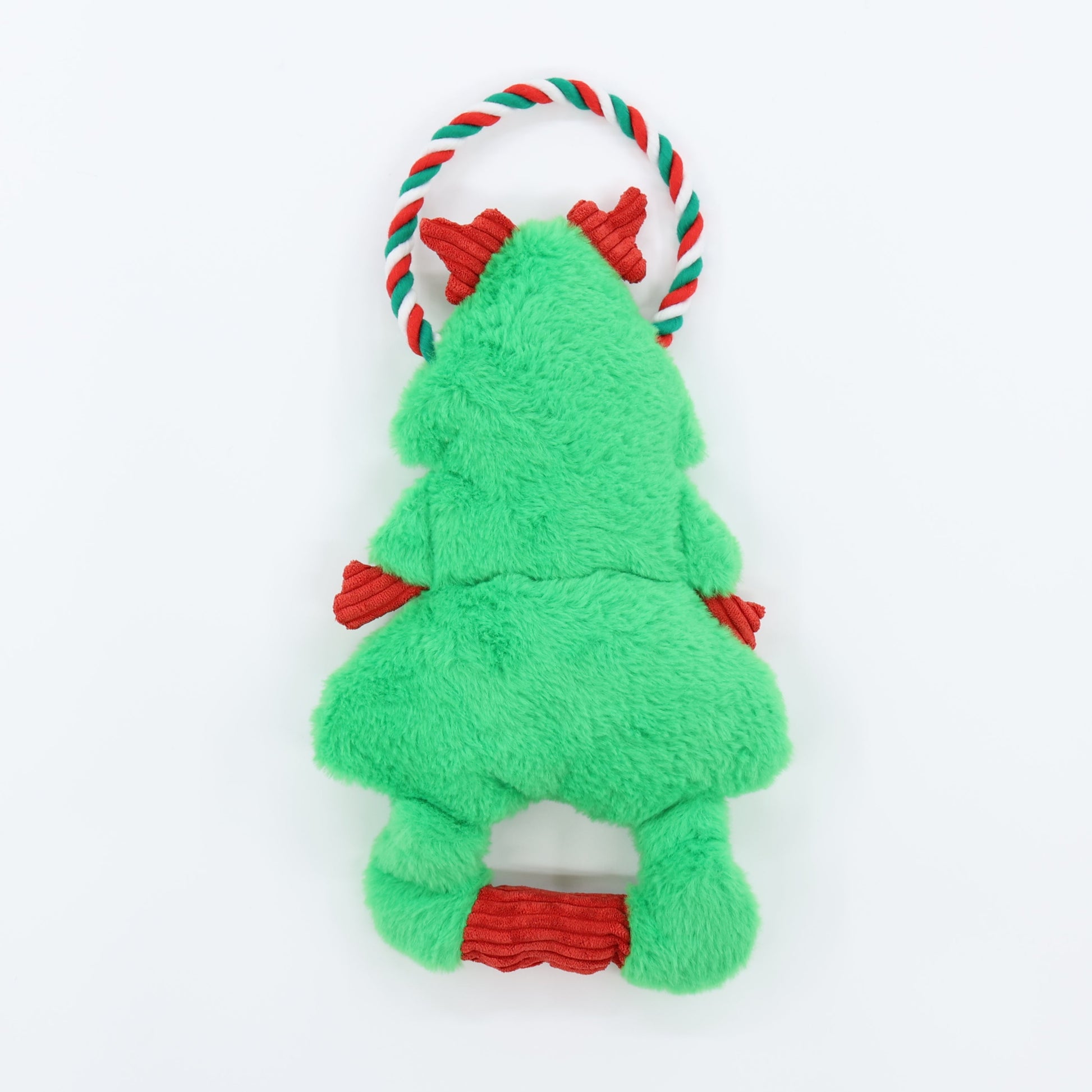 Unleash the holiday fun with the CrinkleTug Christmas Tree 15" Dog Toy! This stuffing-free tug toy is designed with two handles for interactive play between pup and human. Reinforced fabric adds durability, while the squeaker in the body, squeaker in the bottom handle, and crinkle paper through the body keep dogs engaged with exciting sounds. With no stuffing inside, cleanup is easy — making this Christmas tree the perfect holiday gift for dogs who love tug-o-war.