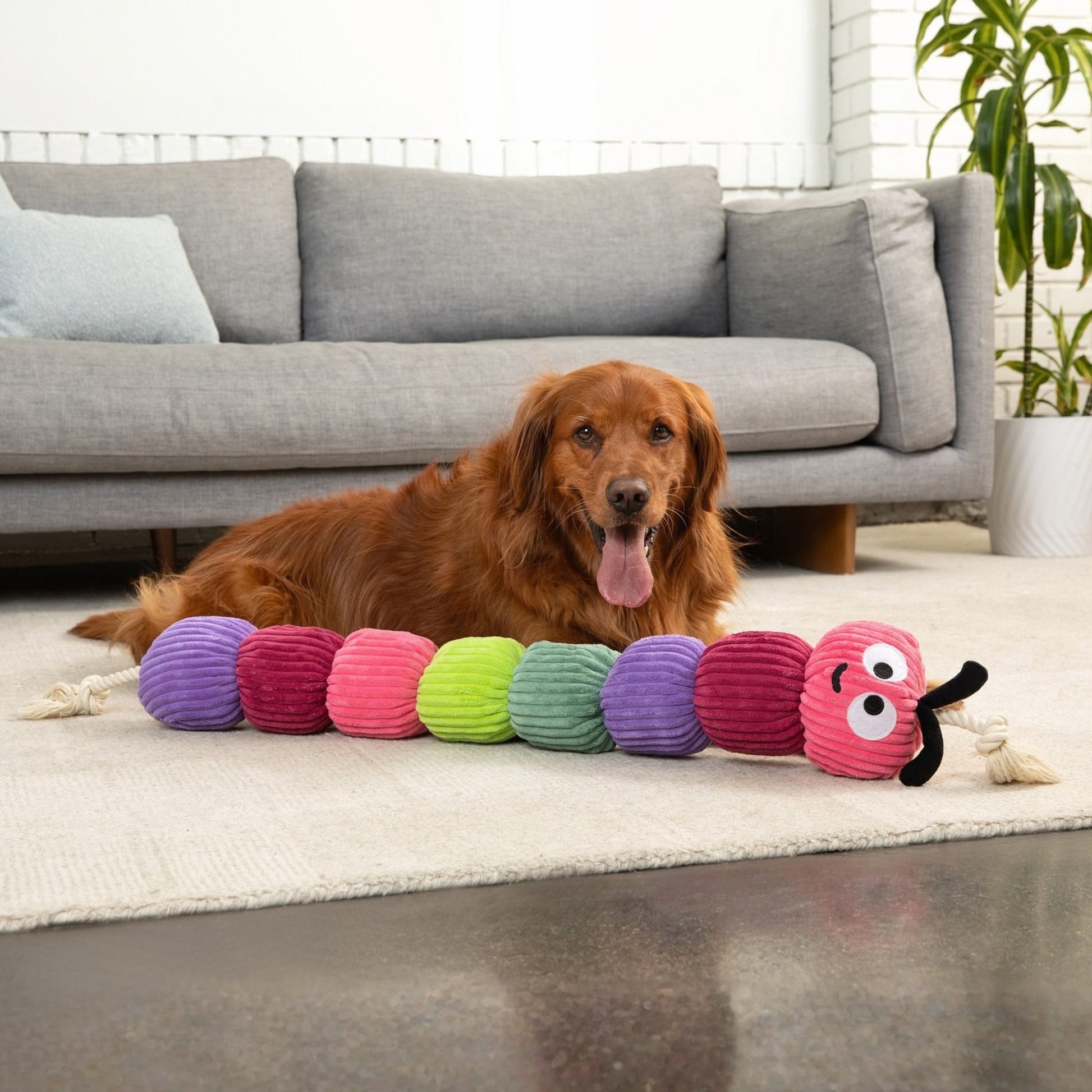 Bold Rope Caterpillar puts a tug-ready twist on the classic caterpillar dogs love. This oversized plush toy combines cozy softness with built-in rope strength, making it perfect for dogs who want to tug hard, thrash around, then settle in for cuddles.