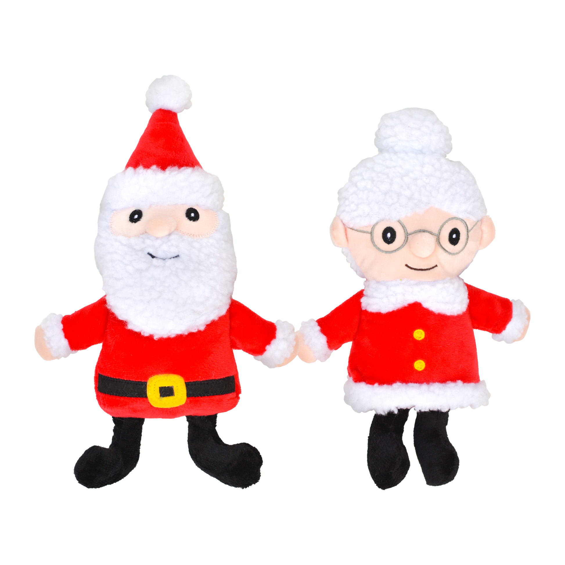 Double the holiday cheer with the Mr. and Mrs. Claus Duo 8" Dog Toys! This festive pair includes Santa and Mrs. Claus, each crafted from soft plush fabric and featuring a squeaker inside to keep pups entertained. Perfectly sized for small to medium dogs, these Christmas companions are great for squeaky play, fetch, or holiday snuggles.