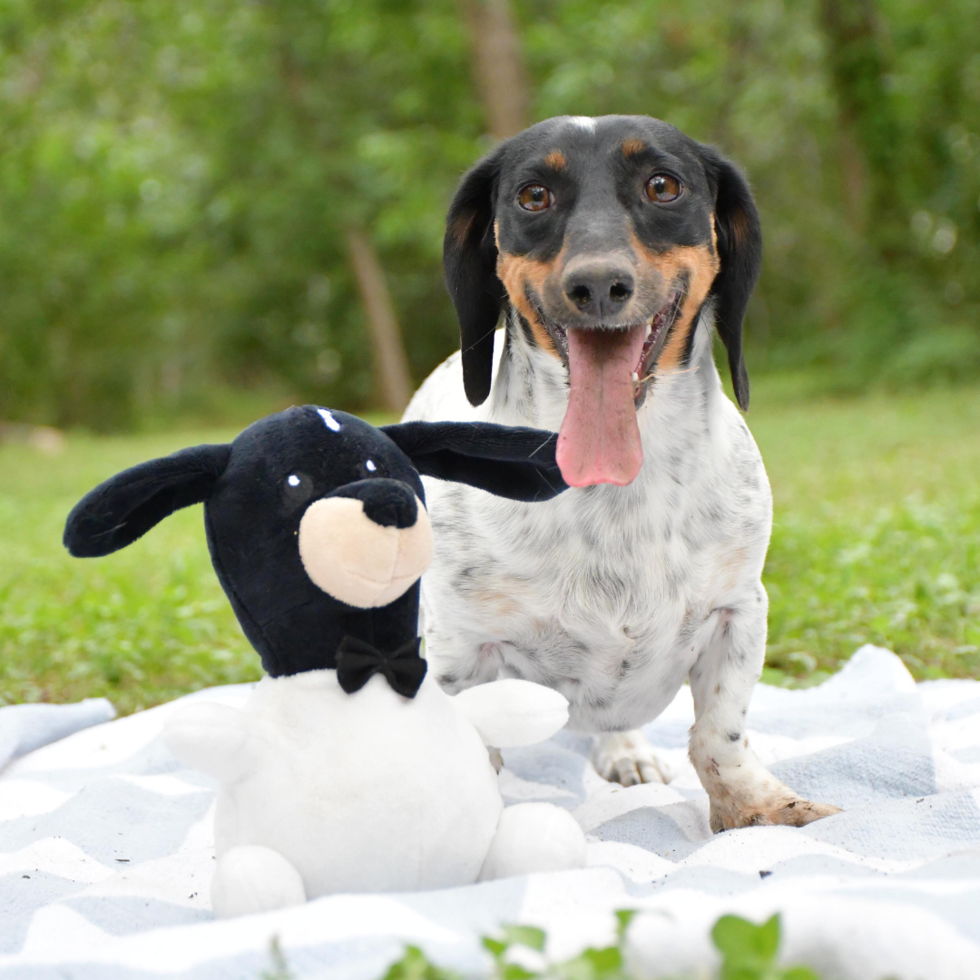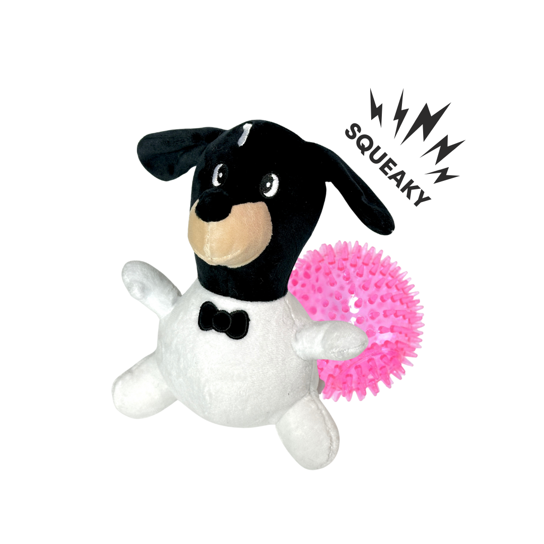 It will provide a longer lasting play with double-stitched seams, reinforced fabric, and a tough prickly rubber ball inside.