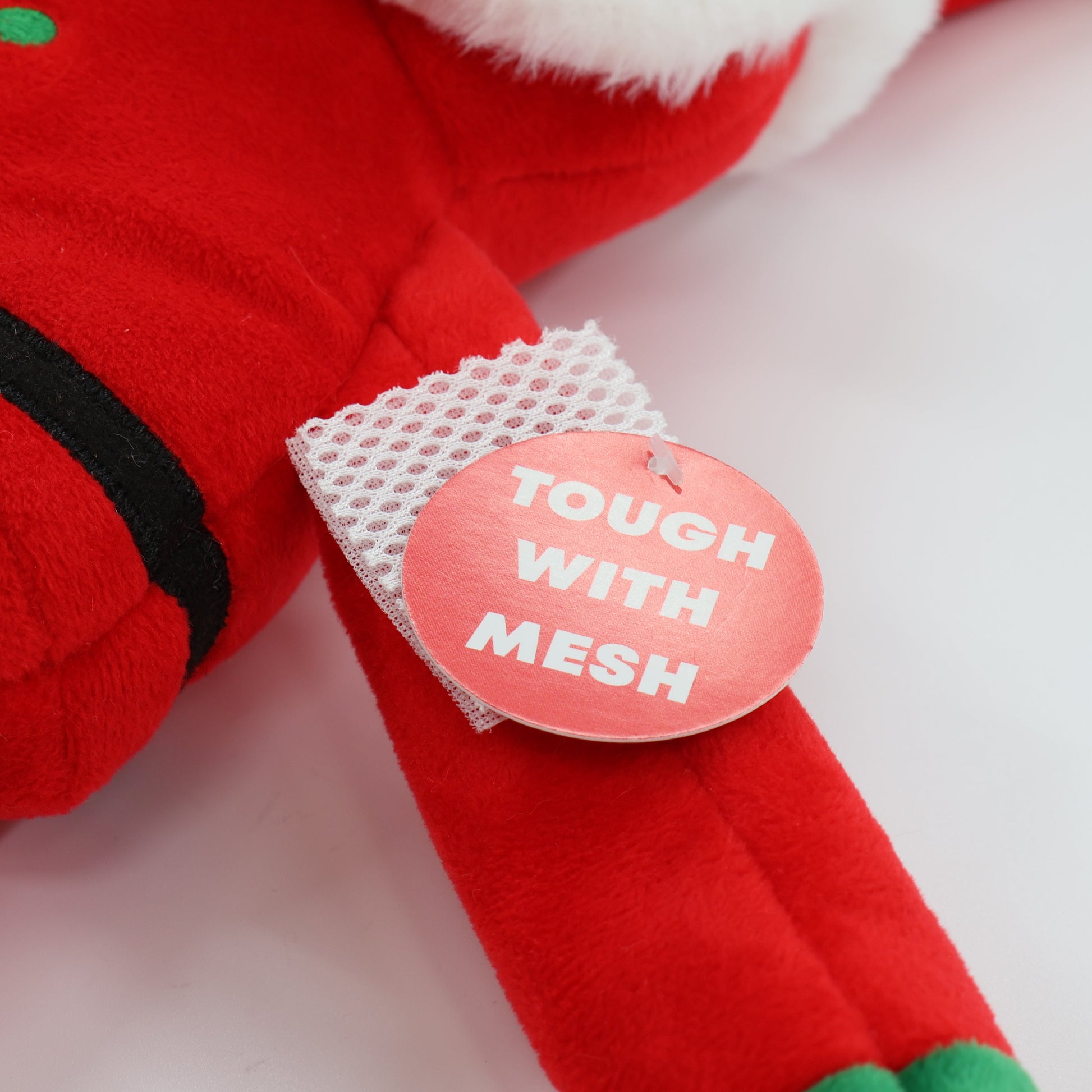 Ho-ho-howl with the Muttley Happy Santa 24" Dog Toy! This festive plush features a 9" bottle squeaker running through the body and head, crinkly arms and legs for extra stimulation, and mesh reinforcement for durability. Perfect for medium to large dogs, this squeaky Santa is ready for tugging, tossing, and cuddling all Christmas season long.