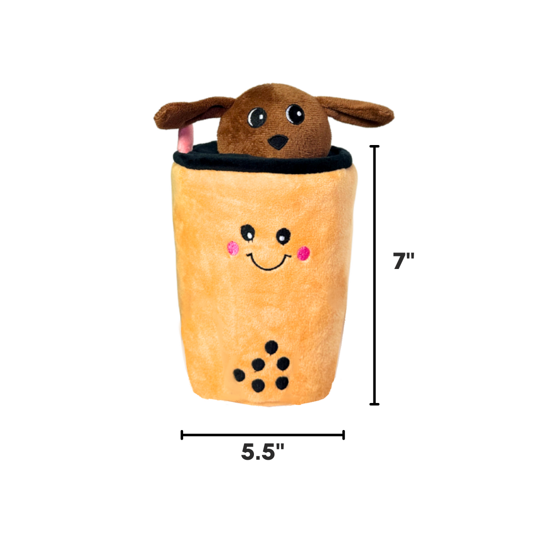 This set includes 3 squeaky Punkin plush toys along with a boba plush pouch.