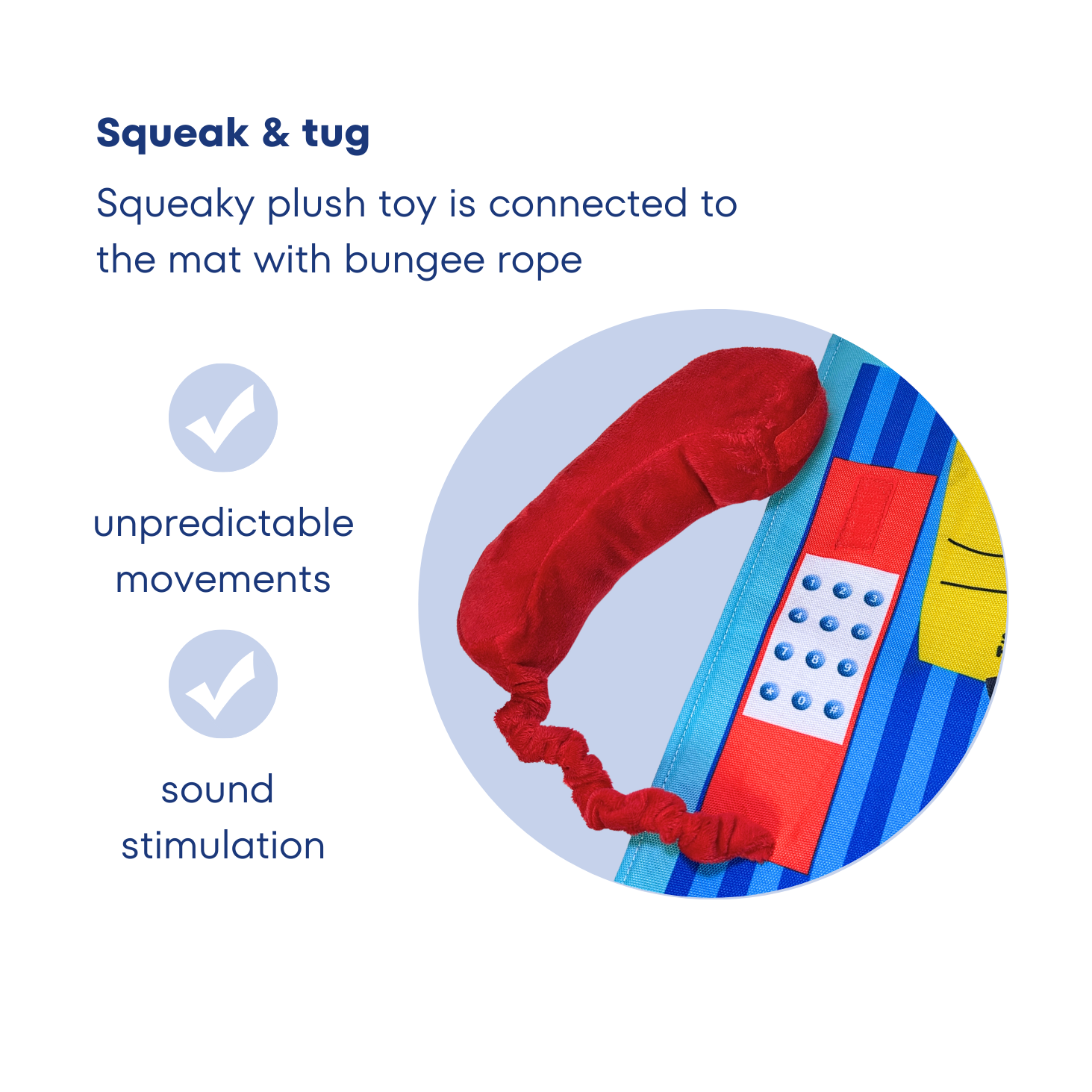 The attached plush telephone with squeaker will provide additional stimulation for your pup.